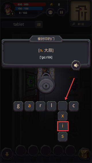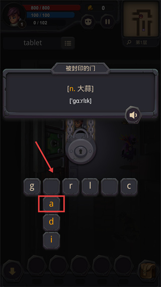 4、完成【garrihk】單詞拼寫時(shí),確認(rèn)無誤后提交,即可解鎖被封印的門,進(jìn)入新區(qū)域探索。