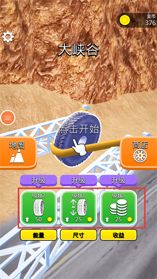 1、進(jìn)入游戲場景,先升級(jí)下方的屬性,再點(diǎn)擊開始按鈕進(jìn)入關(guān)卡。